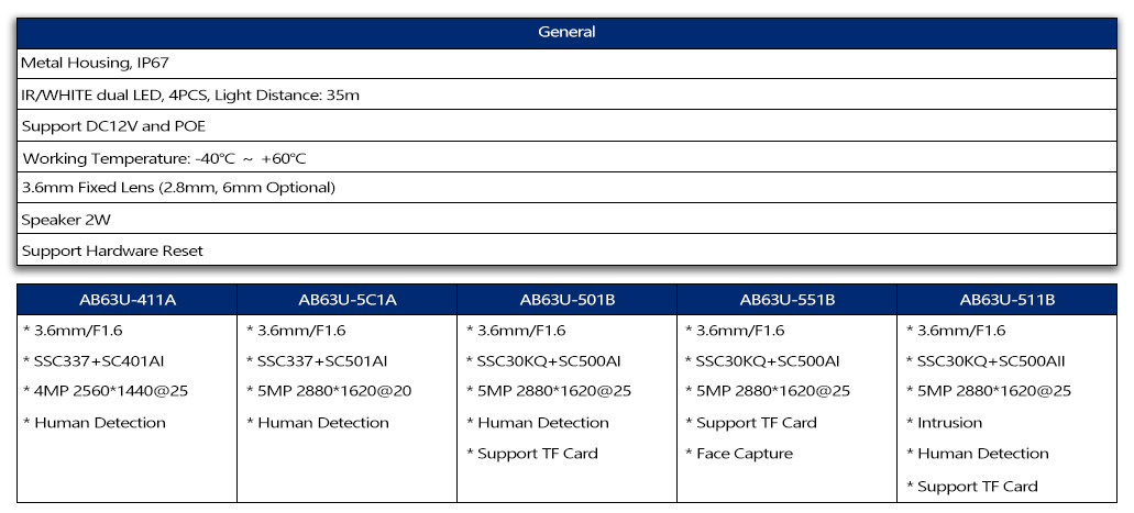 • AB63U 4MP/5MP Bullet Camera